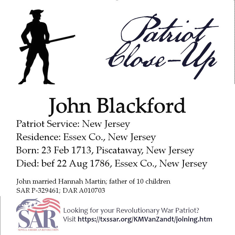 P-329461 / A010703 b. 1713 NJ d. bef 1786 NJ bur. in Scotch Plains Baptist Church Cem., Scotch Plains, Union Co., NJ |