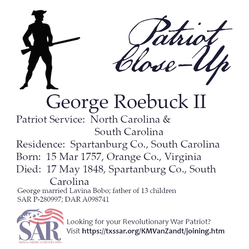 P-280997 / A098741 b. abt 1757 NC d. 1848 SC bur. in Spartanburg Co., SC |
