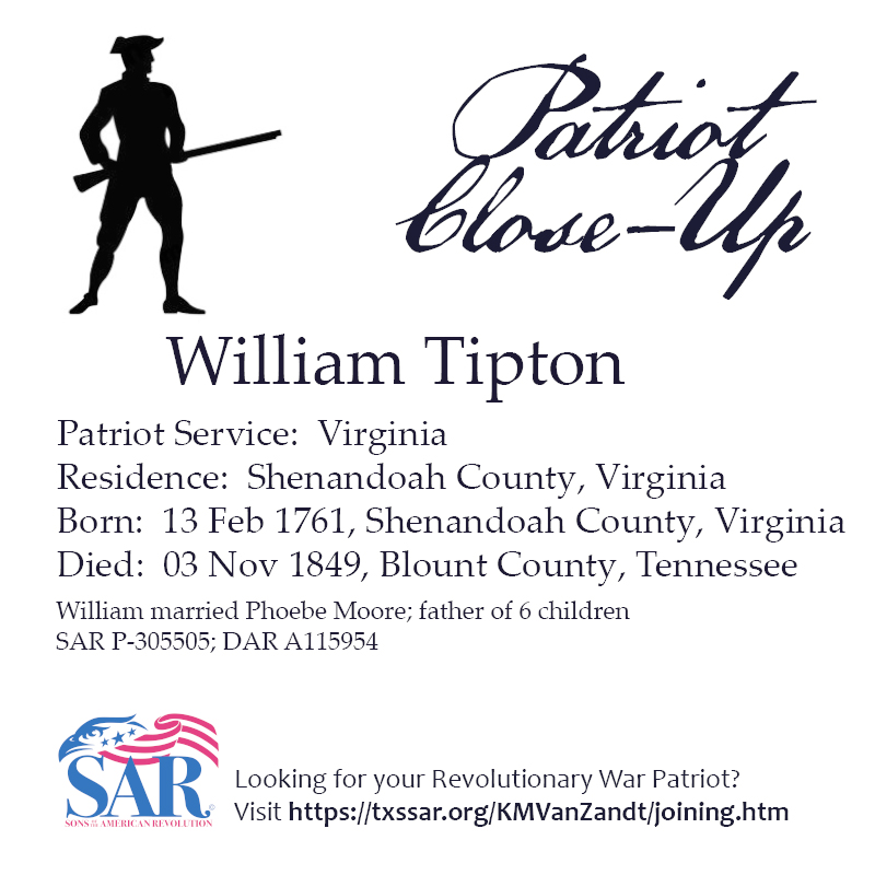 P-305505 / A115954 b. 1761 VA d. 1849 TN bur. in Tipton Cem., Blount Co., TN |